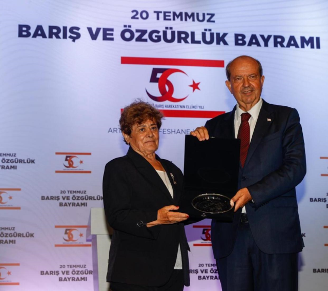 Cumhurbaşkanı Ersin Tatar, resepsiyonda yaptığı konuşmada, 50 yıl önce 20 Temmuz tarihinde Kıbrıs Türk halkının etnik temizlik ve soykırımdan geçmesinin arifesinde, Türkiye’nin garantörlük hakkını kullanarak Harekat gerçekleştirdiğini kaydederek, “Mücahitlerimiz bir destan yazdı. Bu destan sayesinde bugün Kıbrıs’ta barış, huzur ve güvenlik var.” dedi.